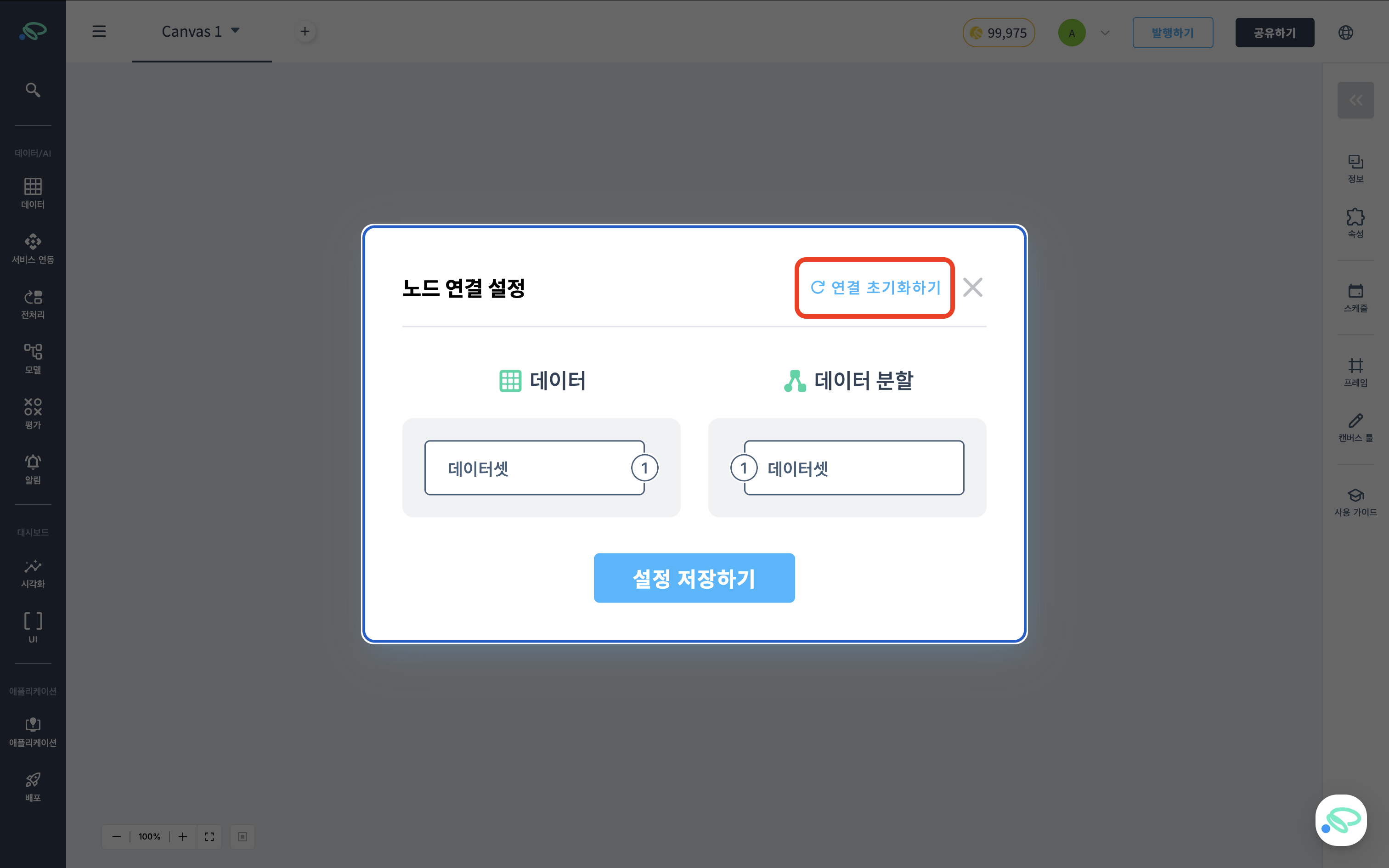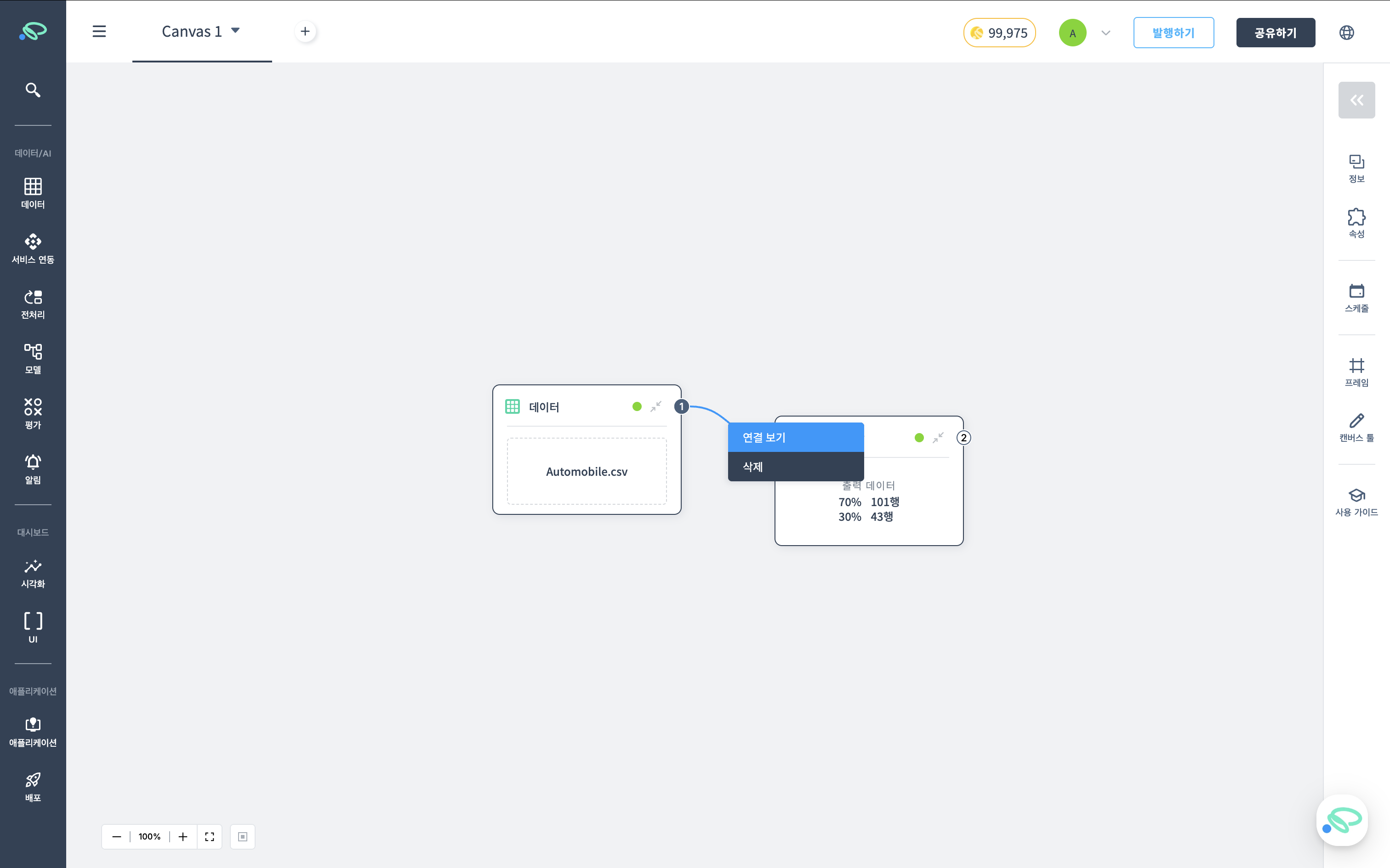 캔버스에서 엣지(노드 간 연결선)를 생성, 삭제, 관리하는 방법을 알아봅니다.