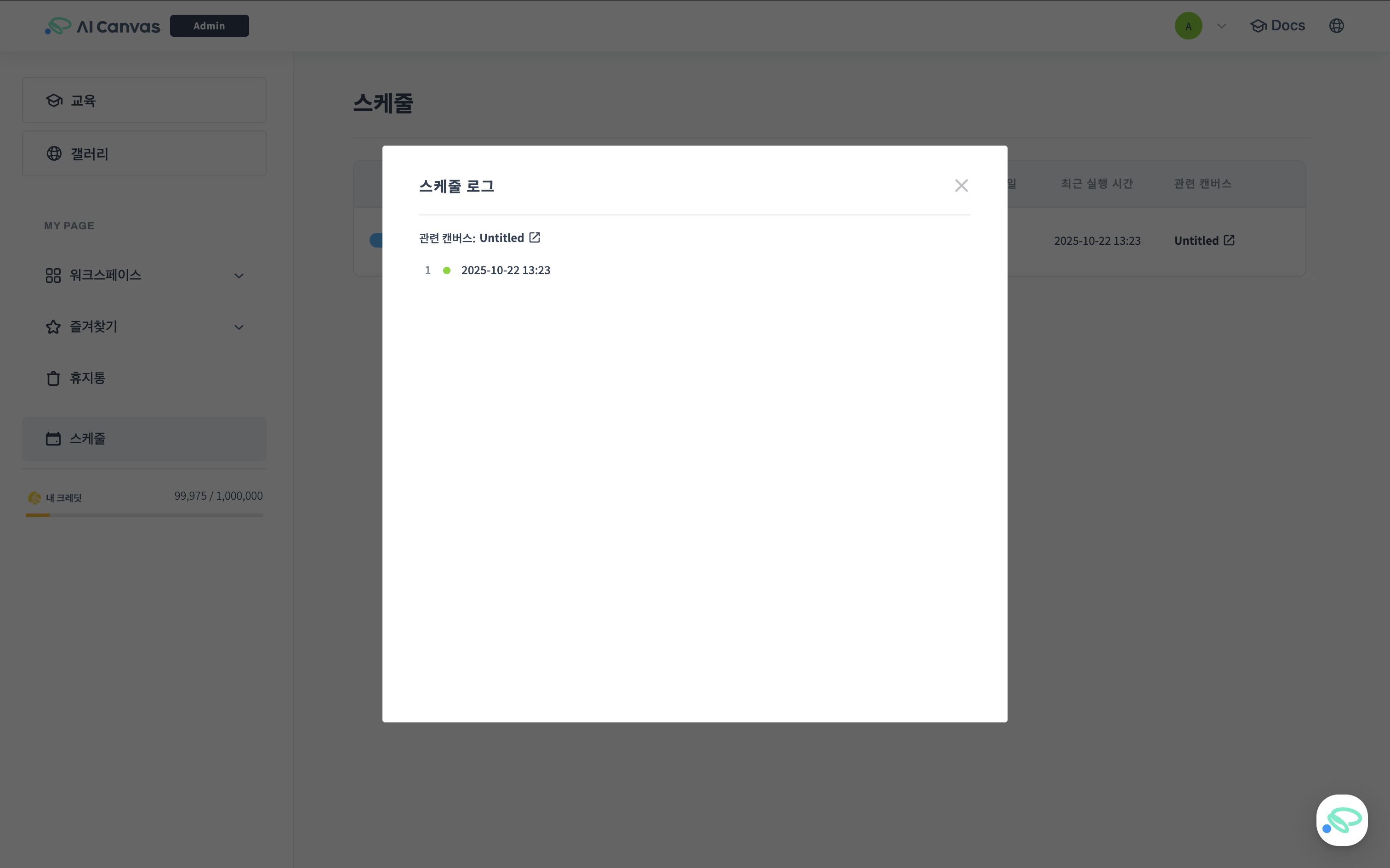 캔버스 스케줄 목록에서 최근 실행 시간 더보기를 클릭합니다.